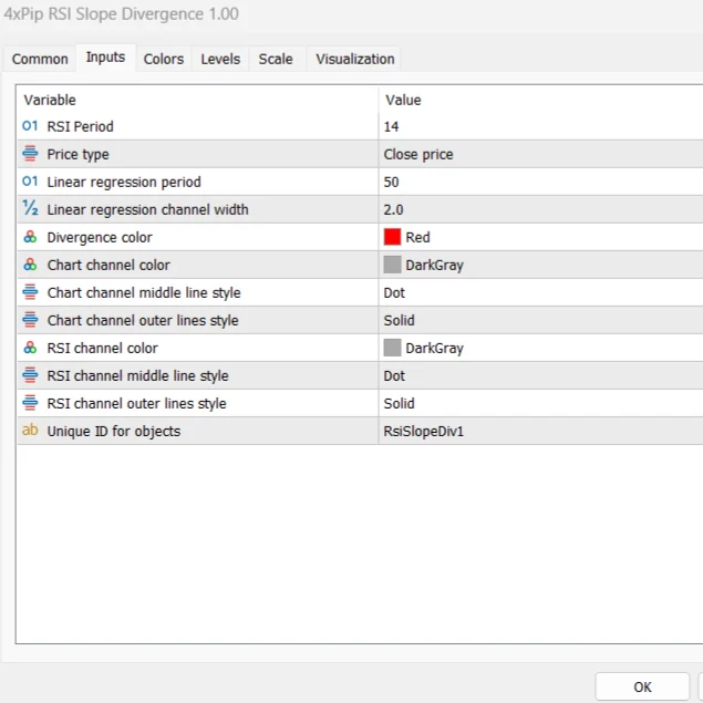 - Easy-to-use parameters for slope color, width, and RSI period.